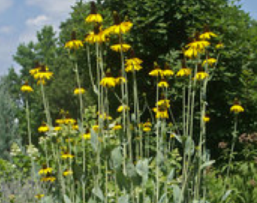 This choice species makes a strong vertical statement with its large, smooth, sea-green leaves and towering stems to 6 feet tall. It bears short, yellow ray florets with giant, upright cones at the center. It prefers average soil with good drainage, and is excellent in native or wild plantings.