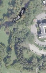 5) Ellicott Creek Area - The Ellicott Creek area consists of nearly the entire southern half of the park. Most of this area is woodland and falls within the creek's floodway and 100-year floodplain boundaries. The area is defined on the north by the Orchard area; on the east by residential properties, the Village Glen Tennis and Fitness Club, and Glen Park; on the south by Glen Avenue; and on the west by open floodplain vegetation and residential properties on North Cayuga Road and Mill Race Court. The primary north/south path is proposed to continue along on the eastern side of the creek. The trail will be located so as to minimize disturbance to existing vegetation and avoid areas subject to the full force of floodwaters. A pedestrian entrance to the park and a trailhead for the primary north/south path is proposed on the north side of Glen Avenue (adjacent to, but set back from Glen Avenue). Seating areas and interpretative signage are proposed adjacent to the pathway and near the creek edge. Fishing access will also be allowed. In the area immediately south of the Orchard area, secondary pathways are proposed along both sides of the creek. To the extent possible these pathways will follow existing informal trails that currently exist.