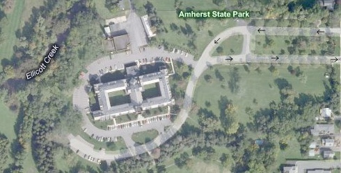 1) Northern Area - The irregular shaped Northern area is defined on the north by Sheridan Drive; on the east by existing residential properties and the Holy Family Home; on the south by the Mother House property; and on the west by Ellicott Creek, private residences, and the Hutchinson Hose Company, Inc. (volunteer fire company). The area is generally flat and includes a combination of lawn and woodland habitat. It is proposed that this area remain unprogrammed and be maintained as open green space. Activities that have historically occurred there will be allowed to continue. The plan also recommends the sale or transfer of the property at 508 Mill Street, the narrow residential lot south of Arty Drive.