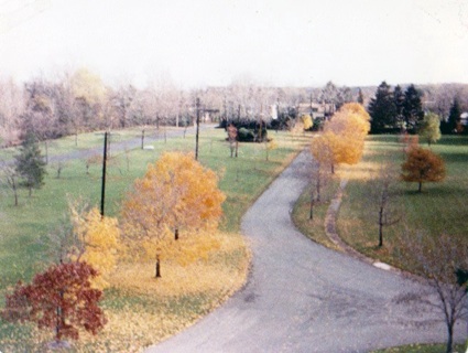 Fall view of the road leading to the entrance on Mill Street from the Mother House of St. Mary of the Angels Convent.
