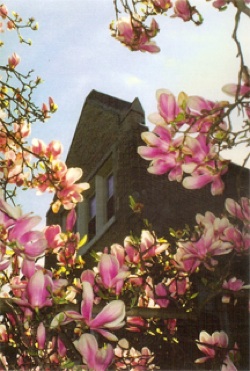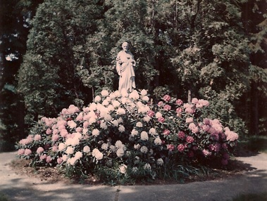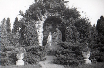 View of the St. Joseph’s Shrine with rhododendrons in bloom, the picture was taken in the summer of 1970.