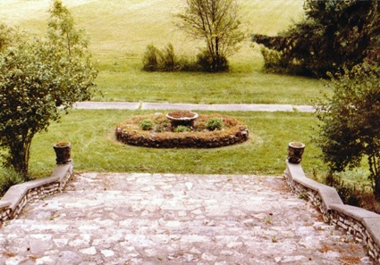 View of the Garden at bottom of steps. Originally a pond with fountain..