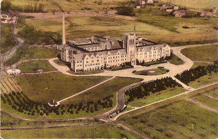Arial view of the Sisters of St. Francis religious campus with the Mother House of St. Mary of the Angels Convent in the center.